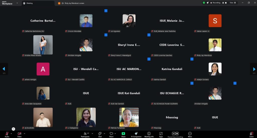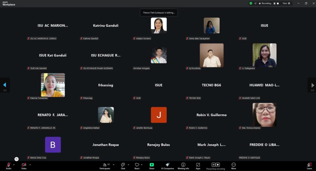 The Isabela State University (ISU) Echague Campus formally launched its “ISU Echague Online Submission and Archiving System” on September 5, 2025, during the conduct of “Writing Research Effectively: An ISUE Gabay Program for Research Writers,” Session 2 via Zoom.